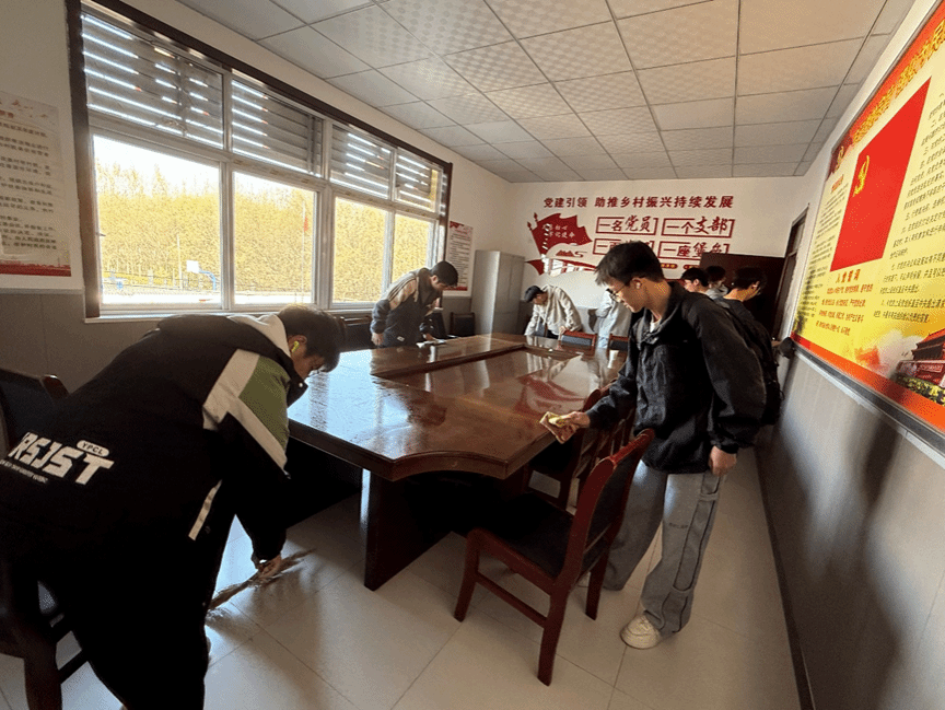 活动伊始,志愿者们按照群委会空间布局划分为3个劳动小组:第一组负责大厅及公共走廊的地面清扫、门窗擦拭,第二组承担会议室的桌椅清洁、文件柜整理,第三组专注活动室的器材擦拭、杂物归位。劳动中全体志愿者分工明确、积极主动,不怕脏累,重点清理了以往易忽视的角落浮尘、墙面污渍及杂物堆积问题。经过集中打扫,村委会内外环境焕然一新,办公区域整洁有序,公共空间干净清爽,为村民营造了更舒心的办事环境,也展现了青年志愿者务实肯干的作风。
