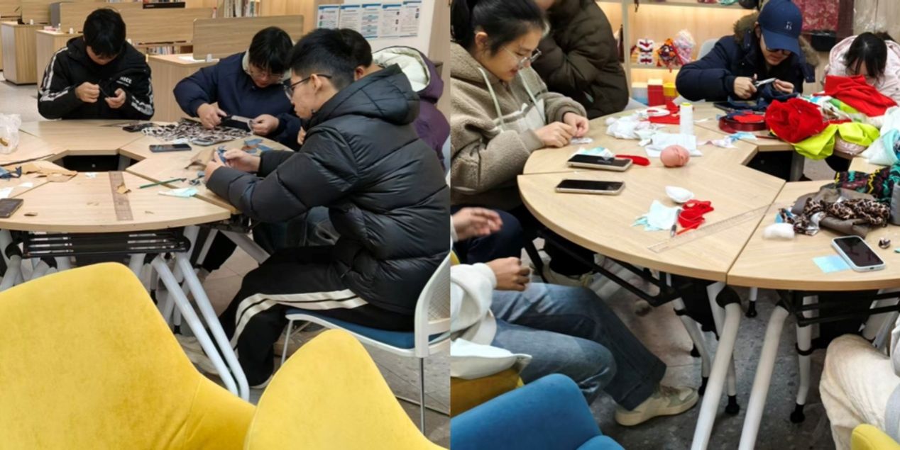 3个团支部16名本科生,赴航开路社区开展旧物改造手工实践活动。同学们怀揣创意热情齐聚现场,将闲置旧物转化为灵感素材,在裁剪缝纫、拼贴创作中独立完成手作改造,让废旧物品焕发全新生命力。