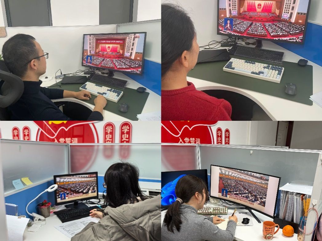 领导班子成员、机关管理干部、师生党员代表在南校区G142会议室集体观看学习,大家全体起立奏唱国歌,认真聆听李强总理政府工作报告。直播结束后,各系所、各支部教师学生结合本职工作和学习,开展热烈讨论和交流。