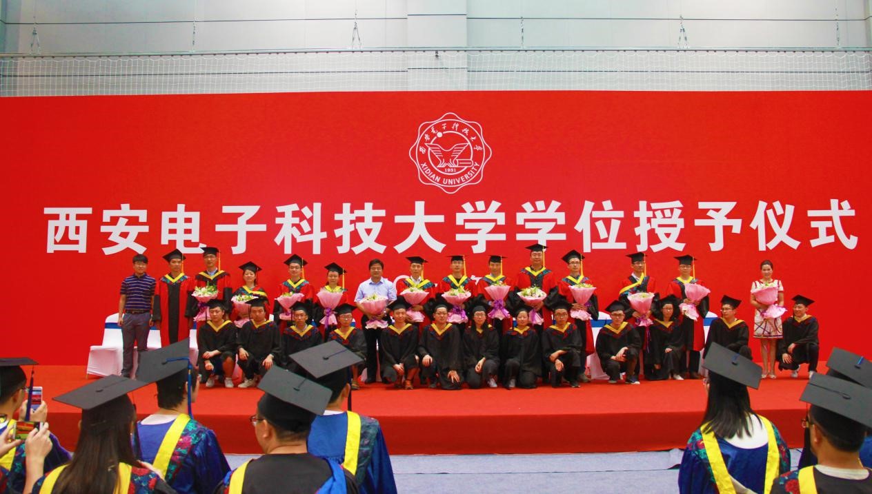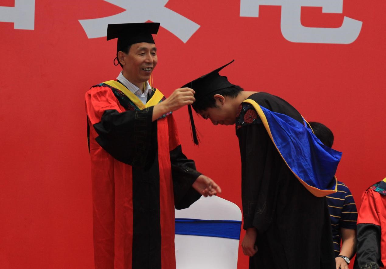 毕业生代表们为全体老师和家长代表赠送鲜花,以感谢老师们四年来的谆谆教诲以及家长们的养育之恩;随后,任应坤、秦勇为每一位毕业生授予学位并拨穗、合影留念;授位结束后,由毕业生代表江嘉枫领唱,毕业生们齐声唱响《再见》,欢快地合影留念,学位授予仪式在依依不舍中结束。