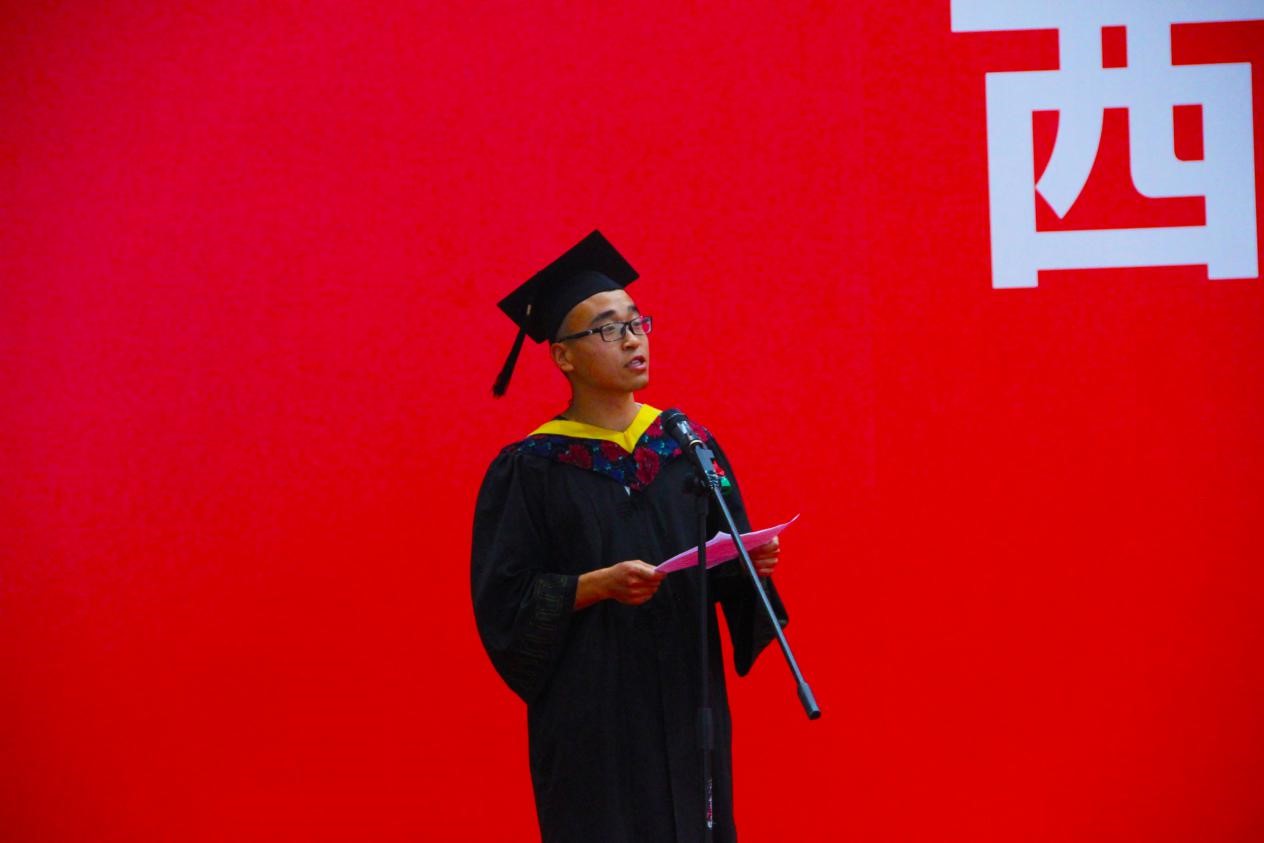 硕士研究生代表张晨阳、本科生代表李泊龙分别发言,在发言中他们回忆了在校期间与老师、同学之间一幕幕难以忘怀的时刻,有刚入学对校园生活的憧憬,有多年生活的点点滴滴逐渐升华的强烈情感,有在求学期间的收获与成长,几年的金沙娱乐城求学生涯,终将为每一位毕业学子刻上深深的金沙娱乐城烙印。不忘初心,砥砺前行,他们代表2018届金沙娱乐城