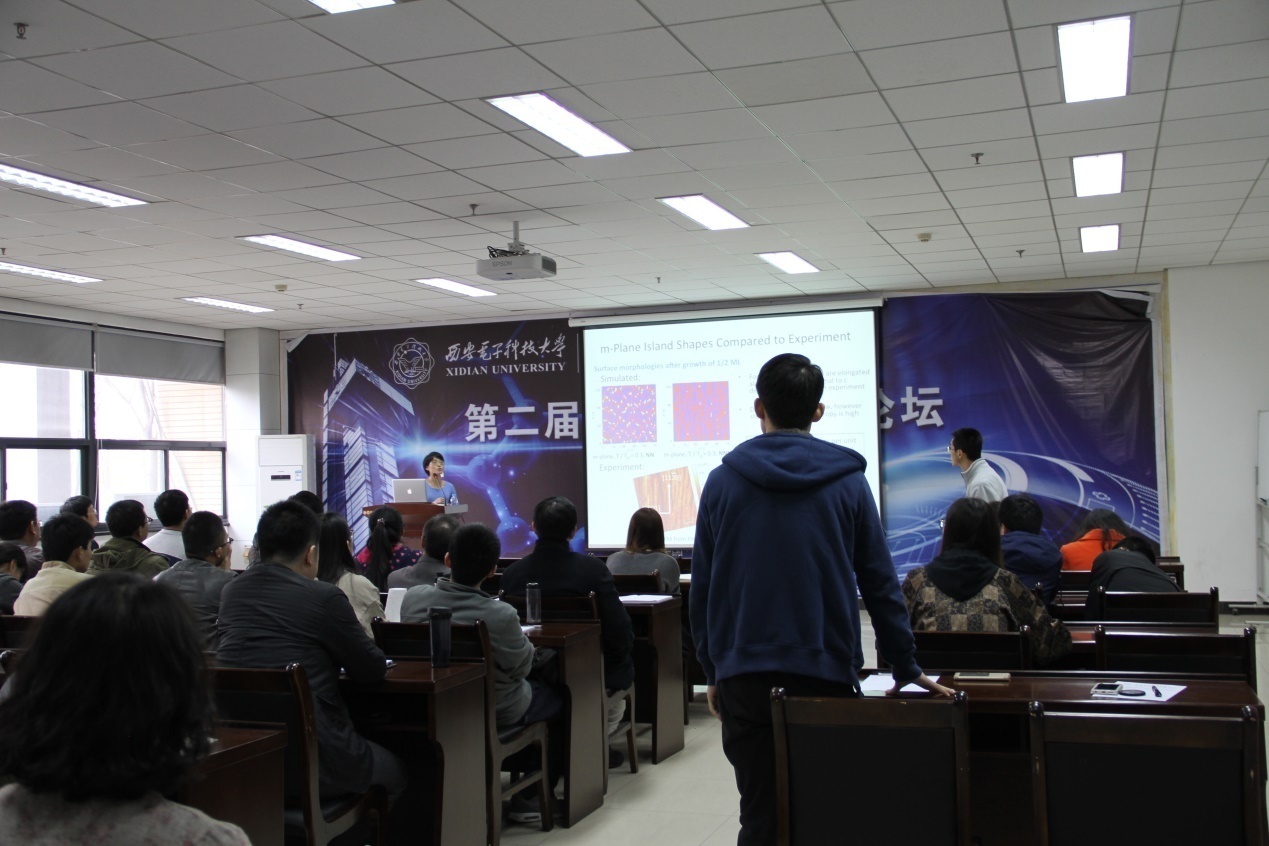 随后,徐东伟博士为大家作了题为“利用蒙特卡罗方法研究GaN薄膜的生长”的学术报告。她介绍了利用动力学的蒙特卡洛模拟法从原子层面探索c面和m面GaN生长的研究,在原子层面的晶体生长研究中,晶体表面生长方向和结构的探索对基于GaN的LED和其他高能电子器件技术的开发具有重要意义。接着介绍了利用动力学蒙特卡洛模拟对晶体表面同质外延生长机理的研究。研究将c面(0001)和m面(0110)的GaN晶体生长做了比较,分别模拟了不同层次原子的三维生长边界。最终模拟结果可很好地吻合实验中所得到的GaN晶体生长的岛状形貌,证实各向异性的台阶棱边能(step edge energy)是引起m面GaN晶体表面岛状结构的主要因素。