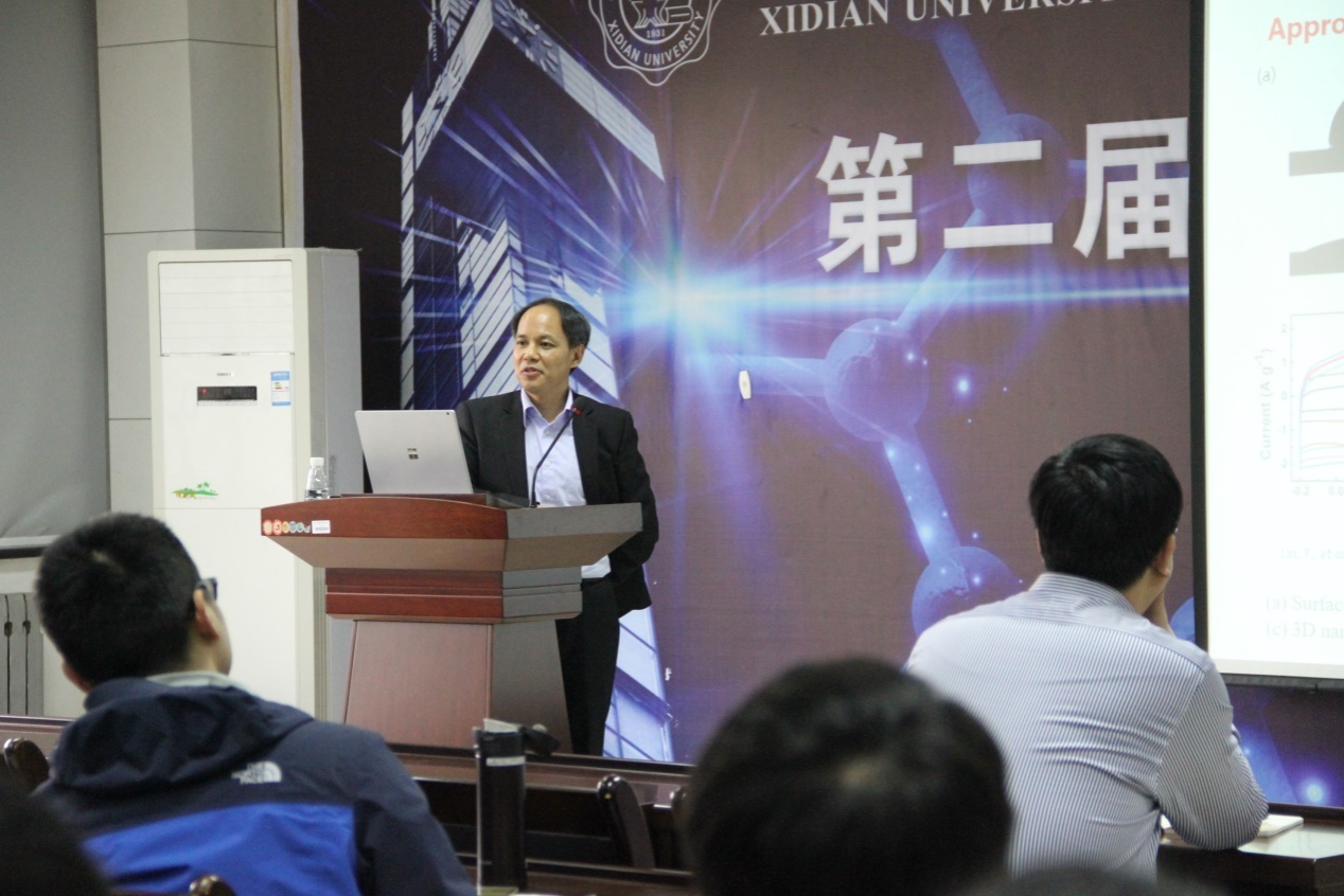 曹国忠教授向与会师生深入浅出地介绍了锂离子电池和超级电容器的研究机理和特点,解释了为什么将锂离子电池和超级电容器有机结合起来,拓展了同学们的认识的同时激发了他们的研究兴趣和热情。他详细分析了目前锂离子电池和超级电容器研究领域中存在的科学问题,并指出了自己的解决思路和方法。曹老师还介绍了其博士研究生所完成的锰基复合材料及其在锂离子电容器中的应用研究工作,介绍了选择锰基材料的原因及其优势,展示了四个已经发表在国外顶级期刊上的系统研究工作,并以此为例,启发同学们如何从事科研工作,尤其是在材料领域,如何从材料的表面机构、微观结构、表面能及缺陷等方面进行深入分析,解决科学的问题,做出创新性工作。