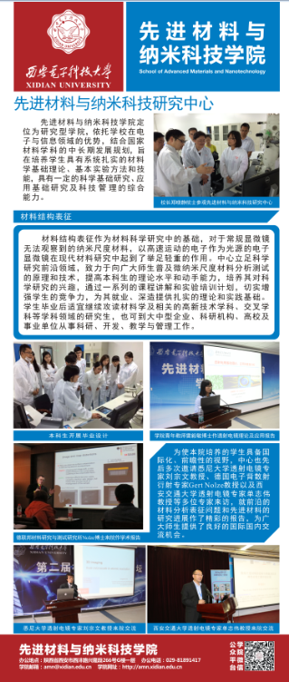 在电子与信息领域的优势,结合国家材料学科的中长期发展规划,在新能源材料与器件、薄膜材料与器件、纳米材料与器件等方面所开展的新型特色的材料研究。同时,本期展板也系统介绍了先进材料与纳米科技研究中心的成立背景、仪器设备情况以及中心人员。新生们不仅了解了金沙娱乐城
