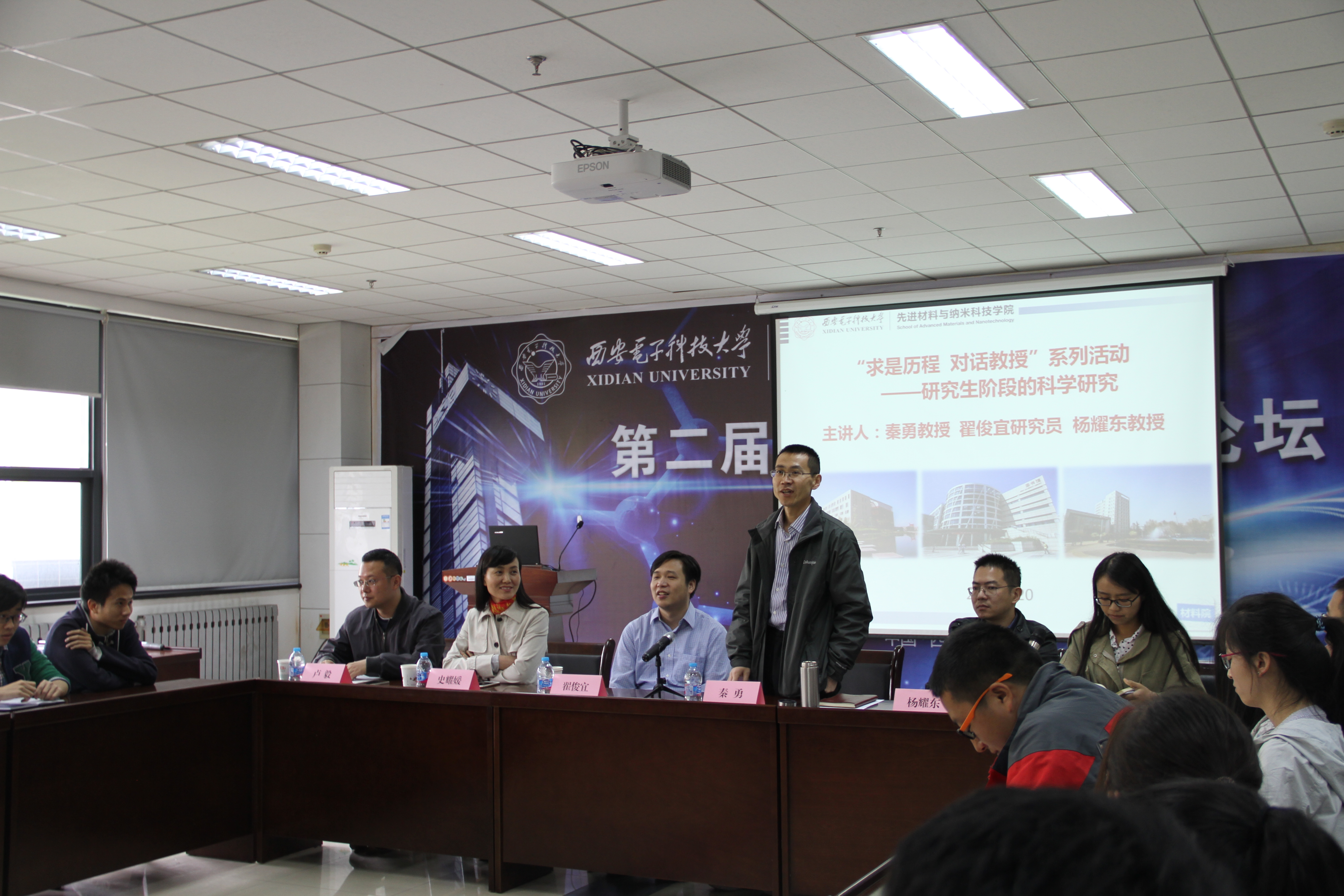 北京纳米能源与系统研究所翟俊宜研究员、西安交通大学杨耀东教授、研工部副部长史耀媛和研工部教管办科长卢毅与30余位研究生围绕“研究生阶段的科学研究”这一主题进行了面对面的交流。