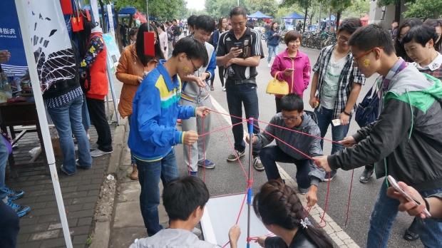 27日早晨7点,团委工作人员就开始布置现场,为中午12点正式开始的活动做准备。活动第一项是自制寿司,工作人员精心挑选食材,亲自指导制作以保证活动的流畅性。该活动受到了同学们的一致欢迎,前来制作的同学络绎不绝。活动第二项是神笔马良——一个多人共同创作书法作品的活动。创作过程中需要很强的团队协作的能力,希望通过这个活动可以培养同学们的团队合作意识,促进身心健康发展。第三项——红包雨活动,红包中是由工作人员精心挑选的各国的纪念币、纪念钞以及干花书签等纪念品。精致的纪念品吸引了很多同学,都对此活动十分称赞。最为火爆的活动是第四项多肉植物、干花手环和星空瓶兑换活动。尽管已经提前考虑到此游戏受欢迎的程度,并增加了领取难度,即采取转发活动推送集赞并分时段兑换的方式,但是中午及下午兑换时段开场不满一小时,百余份工艺品已经被全部领完。其中中午兑换时段更是在十分钟内领取一空。