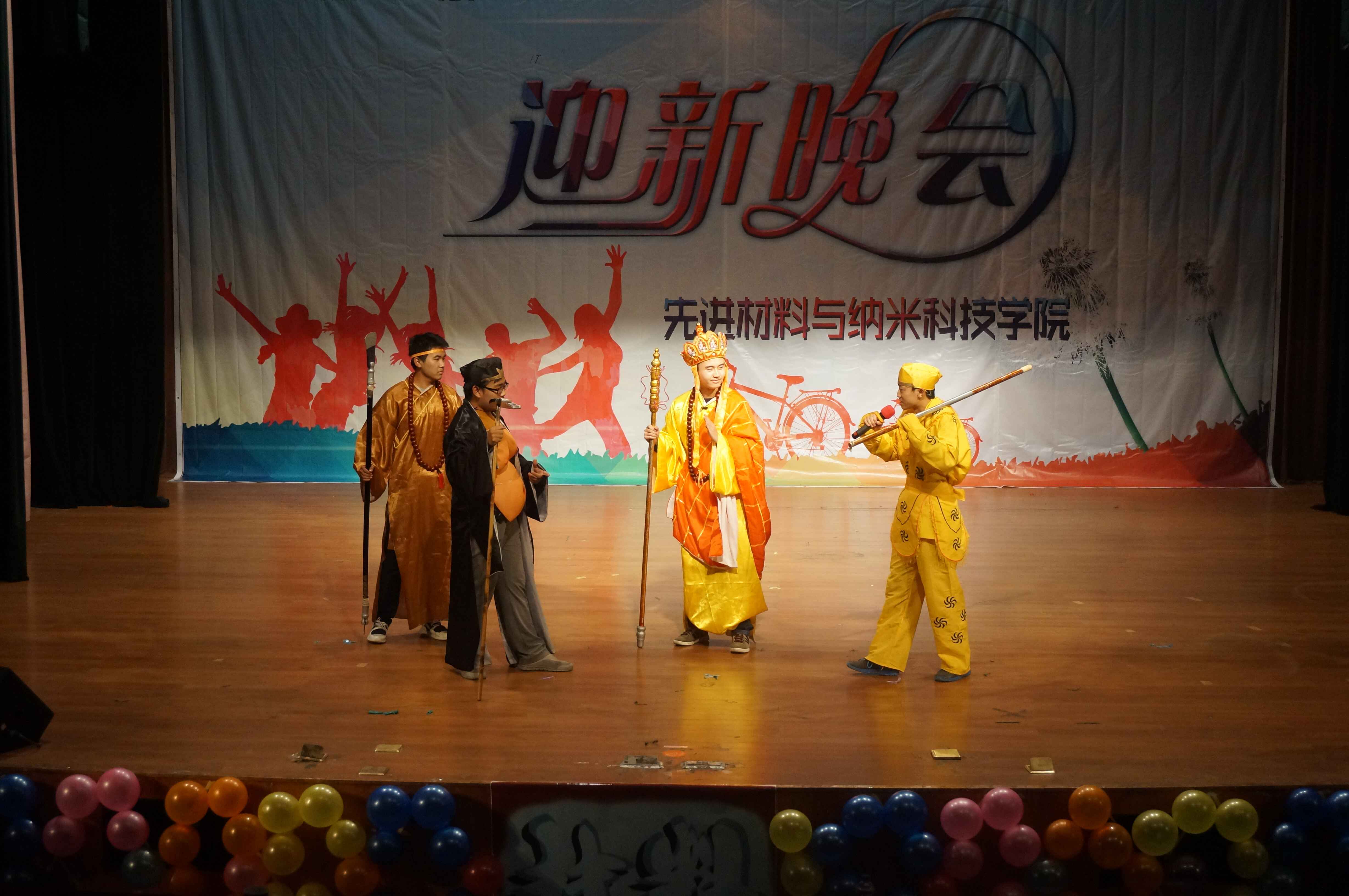学生独有的风采。最后,在领导与演员们合影结束后,迎新晚会正式拉上了帷幕。