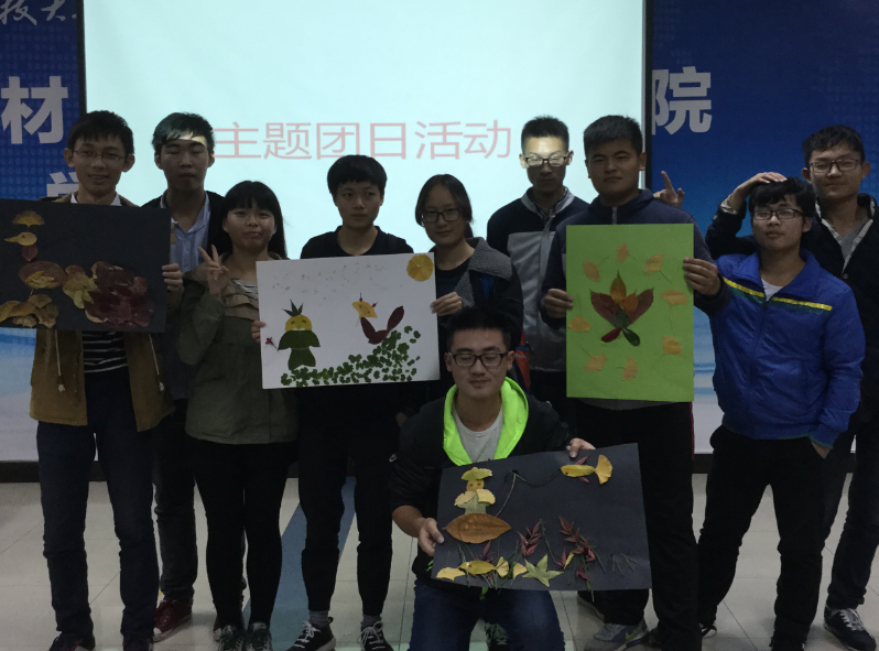 本次活动要求同学们以寝室为单位,限时30分钟,用自己闲暇时所拾到的各种美丽的叶子来拼凑出一幅作品,并且作出相应的解说。30分钟以后,同学们纷纷派出代表向全班同学展示他们团队的成果。萝卜鱼,小王子,花孔雀,大螃蟹,海洋景等等,普通的叶子经过巧妙的搭配后变成了美丽图案,蕴含着各自的寓意。无论是作品还是解说,都让人拍手称赞。在所有作品都解说完以后,根据评比,每个小组都获得了相应的奖品,团日活动圆满结束。