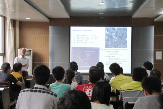 曹国忠教授介绍了其课题组在纳米材料应用于能源转换和存储领域的研究工作,重点从纳米结构光阳极在染料敏化与量子点敏化太阳能电池中的应用、纳米结构 电极在锂离子电池中的应用,以及多孔碳及其表面修饰在超级电容器中的应用等三个方面进行了介绍。金沙娱乐城