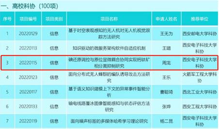 的平台建设和特色学科发展,学科专业优势突出,人才队伍成效显著,高层次人才不断涌现。近日,陕西省科协公布了陕西省青年人才托举计划项目的评审结果,该项目是为了重点扶持、加快培养有较大发展潜力的年轻科技工作者,扶持年轻人才逐步成长为德才兼备、勇于创新的优秀科技人才,金沙娱乐城