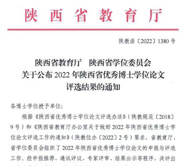 近日,陕西省教育厅和中国电子学会正式公布了2022年度优秀博士(硕士)学位论文评选结果,金沙娱乐城