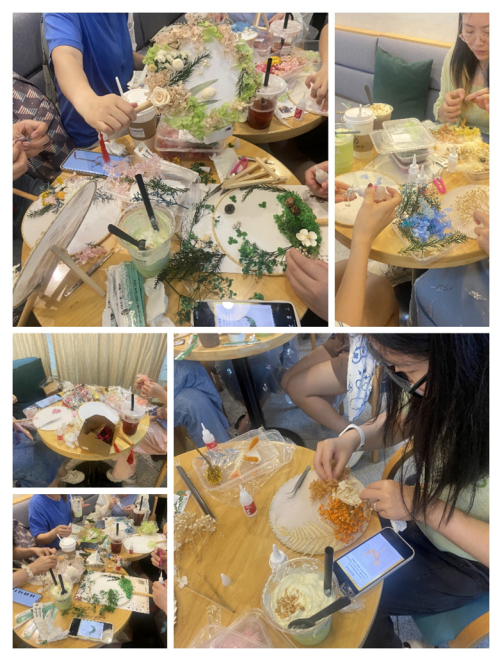 时值夏月,暑意愈浓,在这聒噪的天气里扇底凉风生,轻摇翠羽轻便显得尤为应景,一把团扇摇起的不仅是夏日清凉和婀娜的惬意,更是一脉相承的文化底蕴。活动伊始,主持人尚聪慧首先向同学们介绍此次活动的背景以及活动流程,随后同学们在主持人的引领下,有序选择自己喜欢的花材和团扇并领取制作工具,正式开始了自主制作流程。