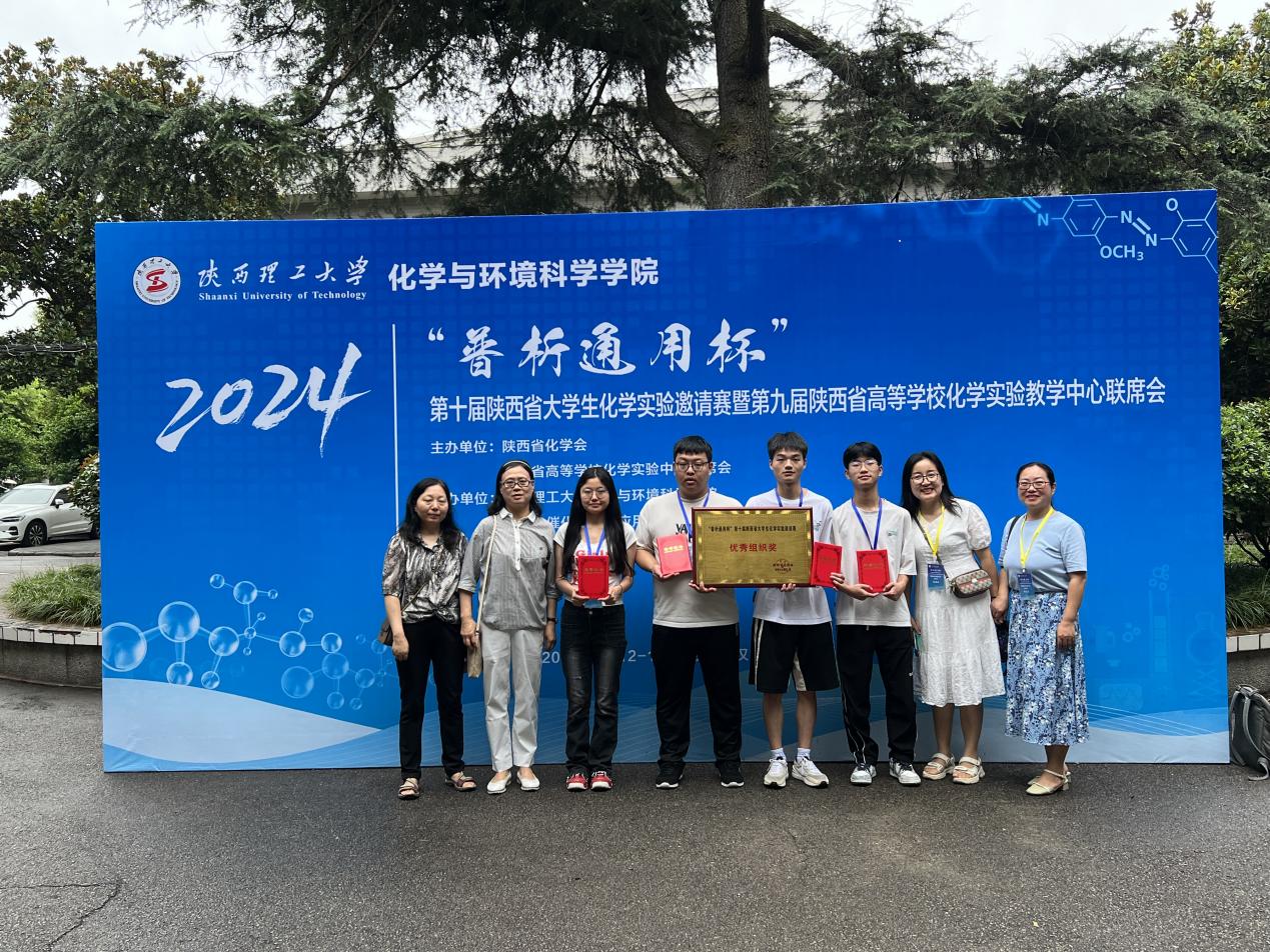 (通讯员 周利君 庞海丽)7月12日至14日,由陕西省化学会主办的2024“普析通用杯”第十届陕西省大学生化学实验邀请赛在陕西理工大学举办。应用化学系朱黎霞、周利君、李淑萍、庞海丽四名带队老师和娄星、李鑫、张亚宾、冯颖四名本科生参赛。