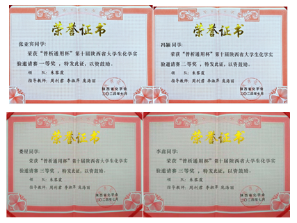 四名学生从陕西省26所高校、108名学生的激烈竞争中脱颖而出,张亚宾同学荣获一等奖,冯颖同学荣获二等奖,娄星同学和李鑫同学分别荣获三等奖,金沙娱乐城