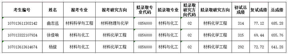 录取资格。”补录的三位同学录取专业为材料与化工,录取研究方向为材料化学工程。专业调整的考生须通过中国研招网调剂系统进行调剂录取(金沙娱乐城