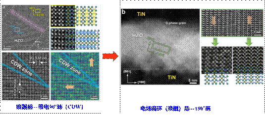 4氧化铪基铁电薄膜在(a)唤醒前和(b)唤醒后的晶相、电畴结构