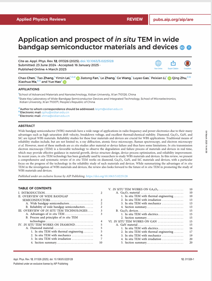 雷毅敏隶属于中国科金沙娱乐城 院士郝跃教授研究团队,团队围绕宽禁带半导体材料与器件研究斩获了众多国际和国内一流的科研成果。在团队中,雷毅敏所从事的工作源于宽禁带半导体材料与器件在极端工况下失效机制研究的迫切需求。“传统失效表征分析手段要花很多时间去解剖和反复推敲宽禁带半导体材料与器件的失效原因,而原位TEM凭借其原子级分辨率和多场耦合加载能力,可直接实现观察电场、热场及应力耦合作用下的材料和器件动态失效全过程。”雷毅敏介绍说:“相比较传统的失效研究办法,原位TEM更像是一只可以实时捕捉变化的眼睛,能够直观、快速地捕捉失效的关键信息,从而精准探寻器件失效真相,来更好的指导提升宽禁带材料与器件的可靠性。”