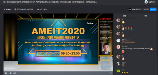 (通讯员:王悦 赵雅倩)2020年8月29日-30日,由郝跃院士、王中林院士、Paul S. Weiss院士以及Lars Samuelson院士等知名专家发起并任主席的能源、信息与材料国际会议(International Conference on Advanced Materials for Energy and Information Technology,简称AMEIT2020)在金沙娱乐城