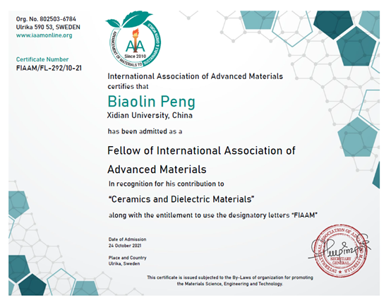 “华山学者”特聘教授彭彪林博士当选国际先进材料学会会士(Fellow of IAAM),以表彰其在“铁电薄膜功能材料领域所做出的杰出贡献”。