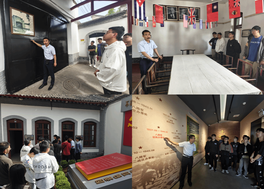 步入八路军驻陕办事处纪念馆,斑驳的木门后藏着一段风云激荡的岁月。在讲解员的引领下,组员们透过一件件革命文物触摸历史肌理:褪色的公文包中,仍能窥见当年情报传递的惊心动魄;泛黄的《新华日报》合订本里,字句间跃动着民族觉醒的脉搏;锈迹斑驳的步枪与马灯,无声诉说着物资转运的千难万险。当目光触达“中共代表林伯渠在此办公”的复原场景时,组员们仿佛看见革命先辈在煤油灯下奋笔疾书的剪影,真切感受到“小院连天下”的格局与担当。