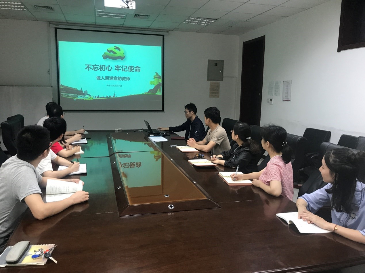 “不忘初心、牢记使命”主题教育实施方案,大家献言献策,一起讨论了系党支部的学习方案,接着由张鹏进行了“不忘初心、牢记使命——做人民满意的教师”为主题的专题党课教育。