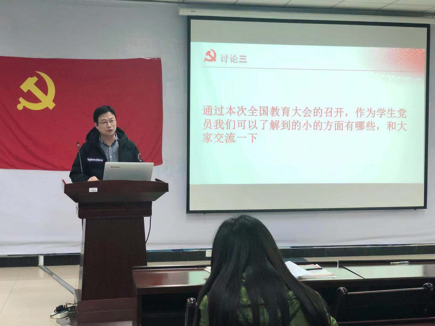 党委副书记程远出席了本次会议,对大会精神进行了深刻解读,从习总书记的讲话中向大家分享自己的心得体会,并对全体党员和积极分子提出几点要求,他强调:教育事关国家的发展,事关民族的未来,是国之大计,党之大计。作为学生党员,我们更应该响应号召,肩负使命、奋勇前进。
