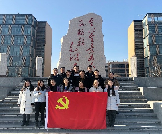 纪念碑前合影留念,2018级硕士党支部“党员政治生日”主题党日活动和预备党员接收大会圆满结束。