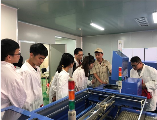 实践代表团队下生产车间、到研发一线,调研企业科研需求,实地考察生产作业环境,走访了中国振华集团下属公司——新云公司、群英公司、风光半导体公司、华联公司、开展点对点实践调研。全体师生深入企业生产一线,参观研发中心、生产车间和检测中心等场所,全方位了解企业生产、研发情况。