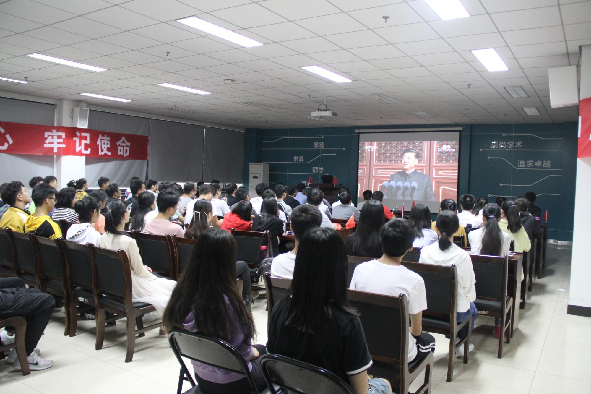 班子成员卢硕、程远、杨如森与部分师生100余人在G-118会议室观看了此次直播。全体参会人员认真学习习近平总书记重要讲话精神,进一步增强广大师生国家荣誉感和民族自豪感。