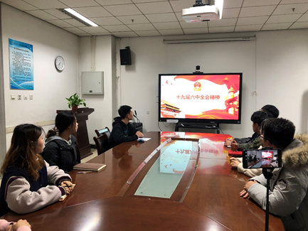 (通讯员 王咏梅)九届中央委员会第六次全体会议于2021年11月8日至11日在北京召开。12日上午,中共中央举行新闻发布会介绍党的十九届六中全会精神。为更好地学习领会全会精神,支部在G119组织全体党员并观看中共中央新闻发布会直播,并于15日上午在G119学习讨论中国共产党第十九届中央委员会第六次全体会议公报,支部书记杨如森带领全体党员同志学习。