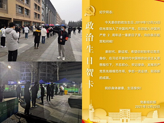 各个核酸检测点前忙碌着。他们的主要工作是维持核酸检测现场秩序,提醒前来检测的师生保持一米以上安全距离,督促师生扫码登记核酸采样时间,此外还要帮助医护人员清理检测台的垃圾等。在入党2周年政治生日这天坚守抗疫一线,意义非同寻常,纪宁坚定地说道:“有召必来!我和一批同学深夜迅速集结,凌晨准时上岗,这是共产党员的使命。相信同心战役,就能共克时艰,艰难的时光总能过去,西安加油!考研加油!”“00后”学生党员们充分展现了不怕苦、不畏难、斗风险、担责任的激昂青春风采。