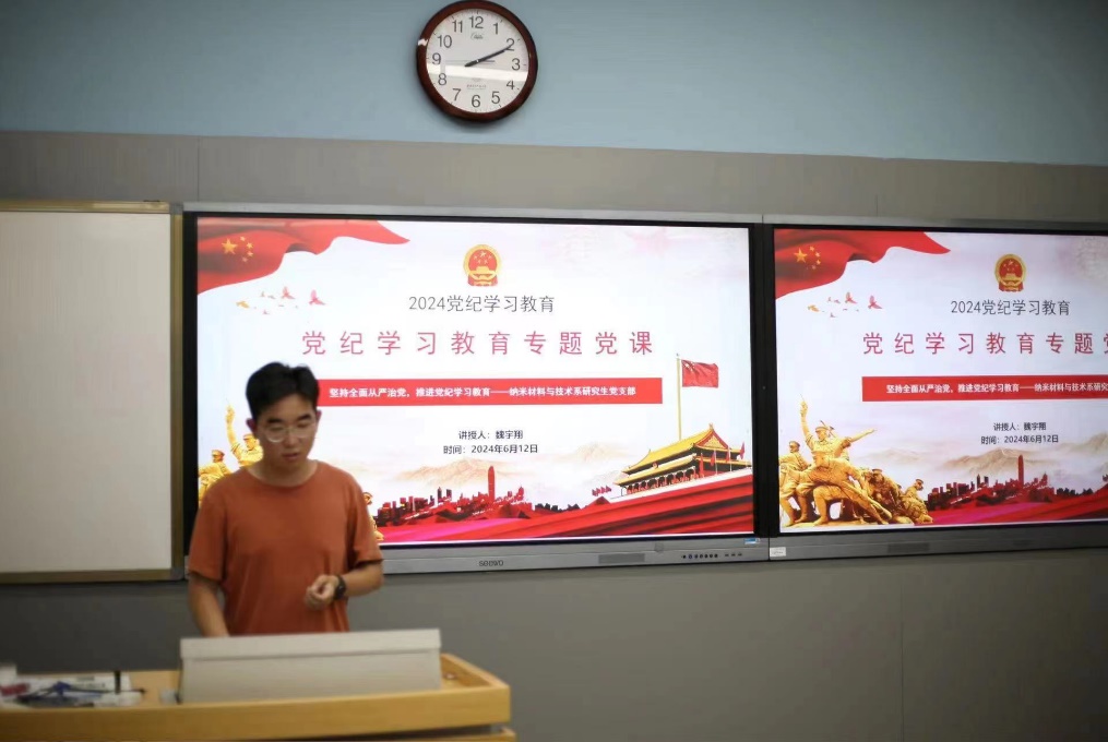 (通讯员 宫明威)为落实全面从严治党要求,推进党纪学习教育深入开展,确保党员更好贯彻执行党的纪律和规矩, 6月12日下午,金沙娱乐城 纳米材料与技术系研究生党支部在C楼126召开会议,支部书记魏宇翔以“坚持全面从严治党 推进党纪学习教育”为主题讲授专题党课