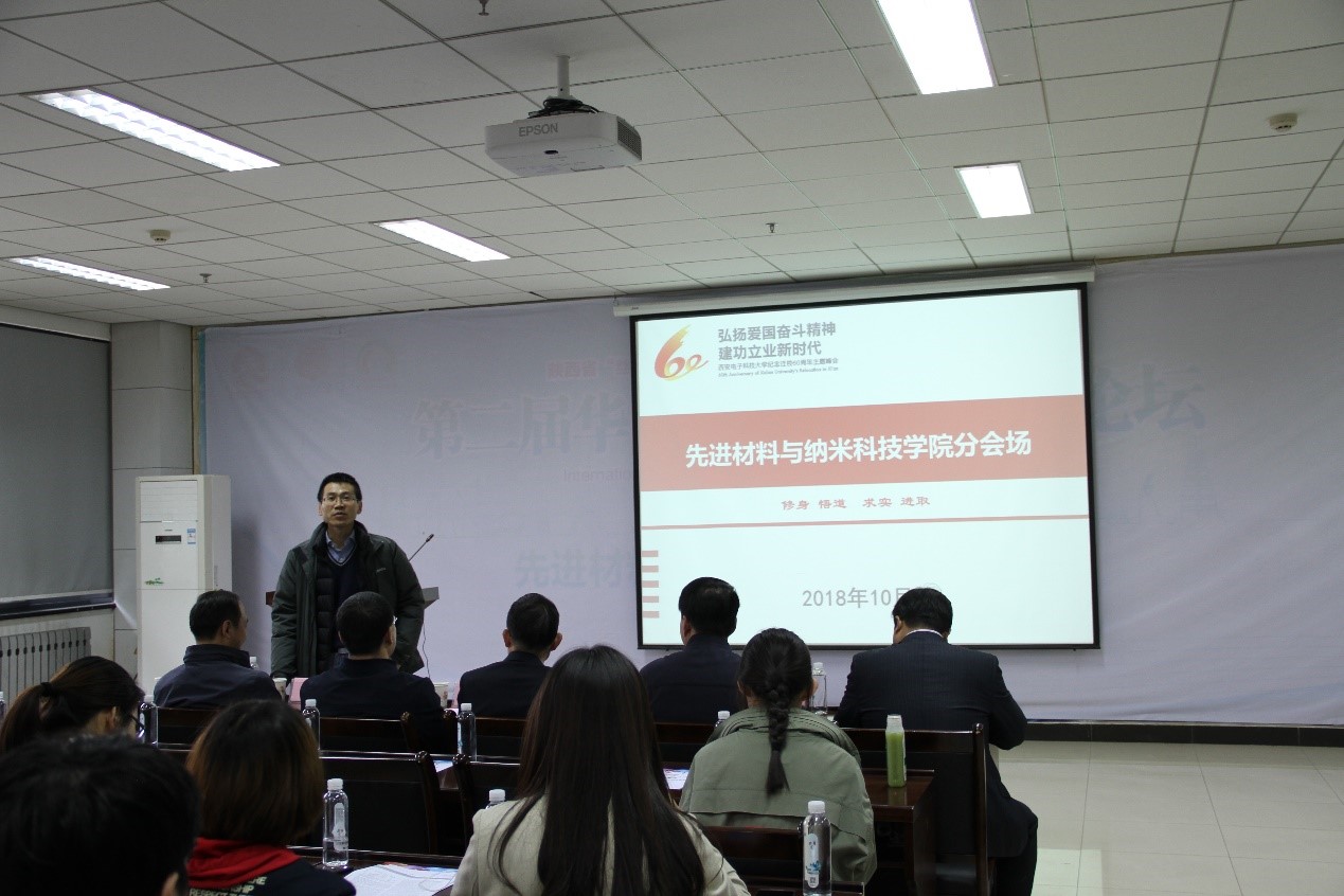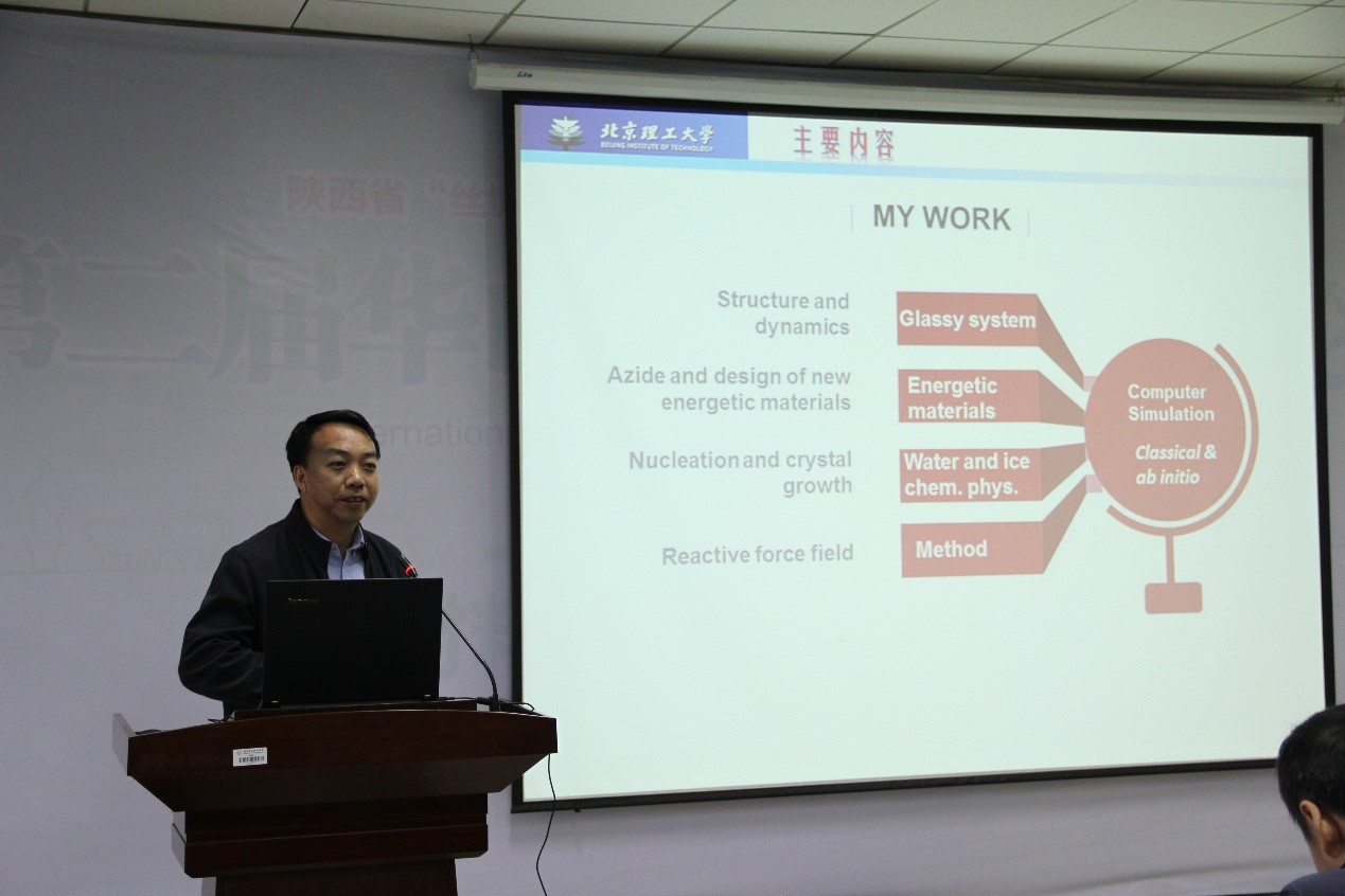 对4位专家学者的到来表示热烈欢迎,并就中南大学刘文胜教授、中国工程物理研究院新能源研究所张文华教授、空军工程大学的马华教授以及北京理工大学吕勇军副教授等个人情况进行了简短介绍。在学术报告环节,刘文胜、张文华、吕勇军立足自己的研究领域,分别作了题为《金锡共晶合金的凝固组织调控与变形机制研究》、《新型太阳能材料与电池应用研究》、《非晶态体系的弛豫动力学研究》的学术报告,将自己最新研究成果和进展进行了分享,并和与会师生进行了深入探讨,交流了材料科学发展的新思想、新理论和新应用,共同探索材料学科最新的发展趋势。报告会上掌声不断,师生们沉浸在浓郁的学术氛围、激烈的思想碰撞和交流中。杨如森教授主持了学术报告环节。