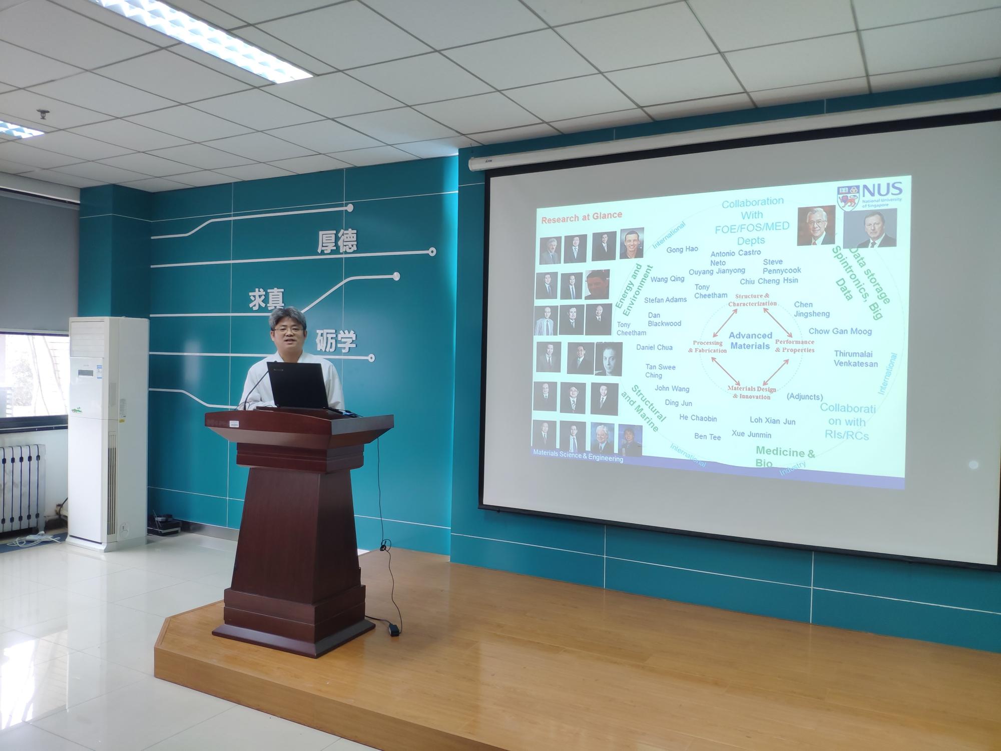 (下面简称材料院)“3+1+1”联合培养项目宣讲会在南校区G栋118报告厅举行,新国大材料科学与工程学系副系主任丁军教授、新国大材料科学与工程学系欧阳建勇副教授、新国大苏州研究院“3+1+1”项目办公室戴念老师、材料院党委书记卢硕、副院长杨如森教授、院务助理施建章副教授以及100余名学生共同参加了此次宣讲会。