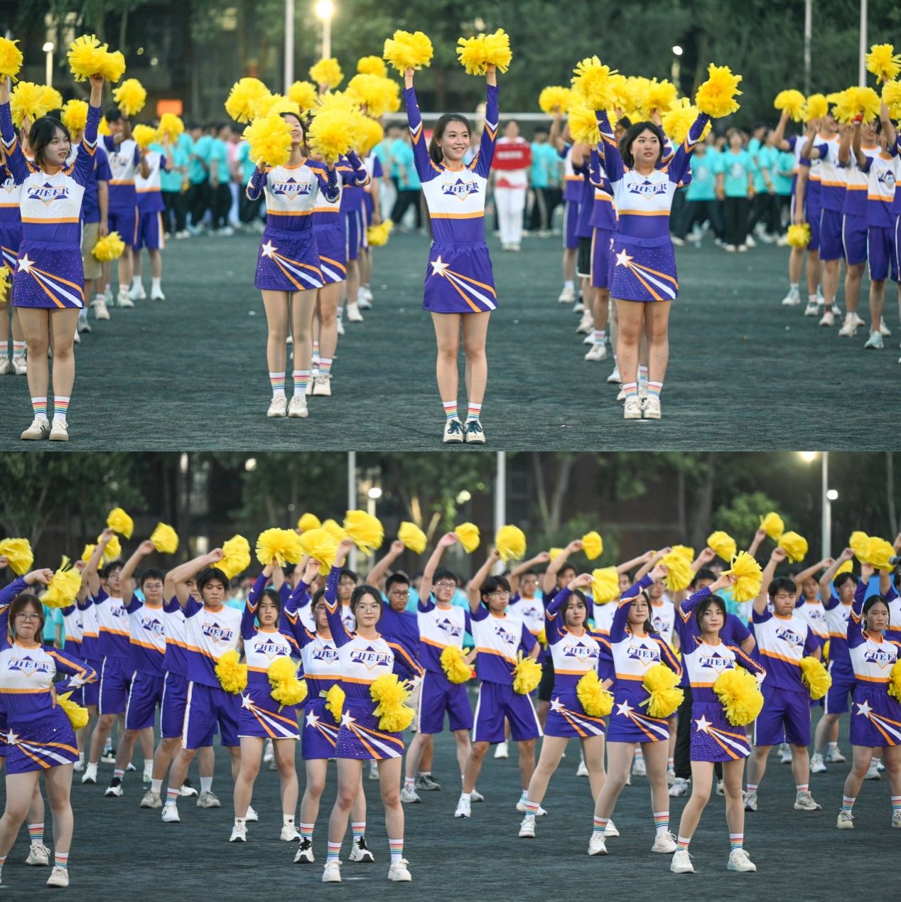 “动作整齐如一人”的背后是21个夏夜的汗水与坚持。为呈现最佳舞台效果同学们4月下旬起每晚在操场练习,对细节追求精益求精、对效果呈现严格把关把,从手臂抬举的高度到转身角度的统一,从队形变换的流畅度到“XDU”图案的精准卡位,每个环节都反复打磨。夏夜闷热,蚊虫环绕,衣服被汗水浸透更是家常便饭,但团队始终以轻松乐观的心态面对挑战,不惧困难。