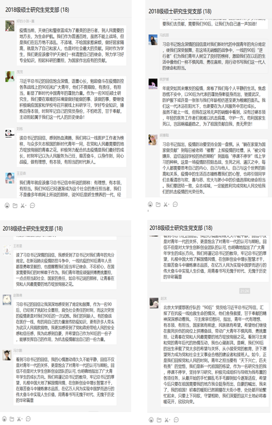 2018级硕士党支部开展线上集体学习此次回信精神,并展开积极讨论。