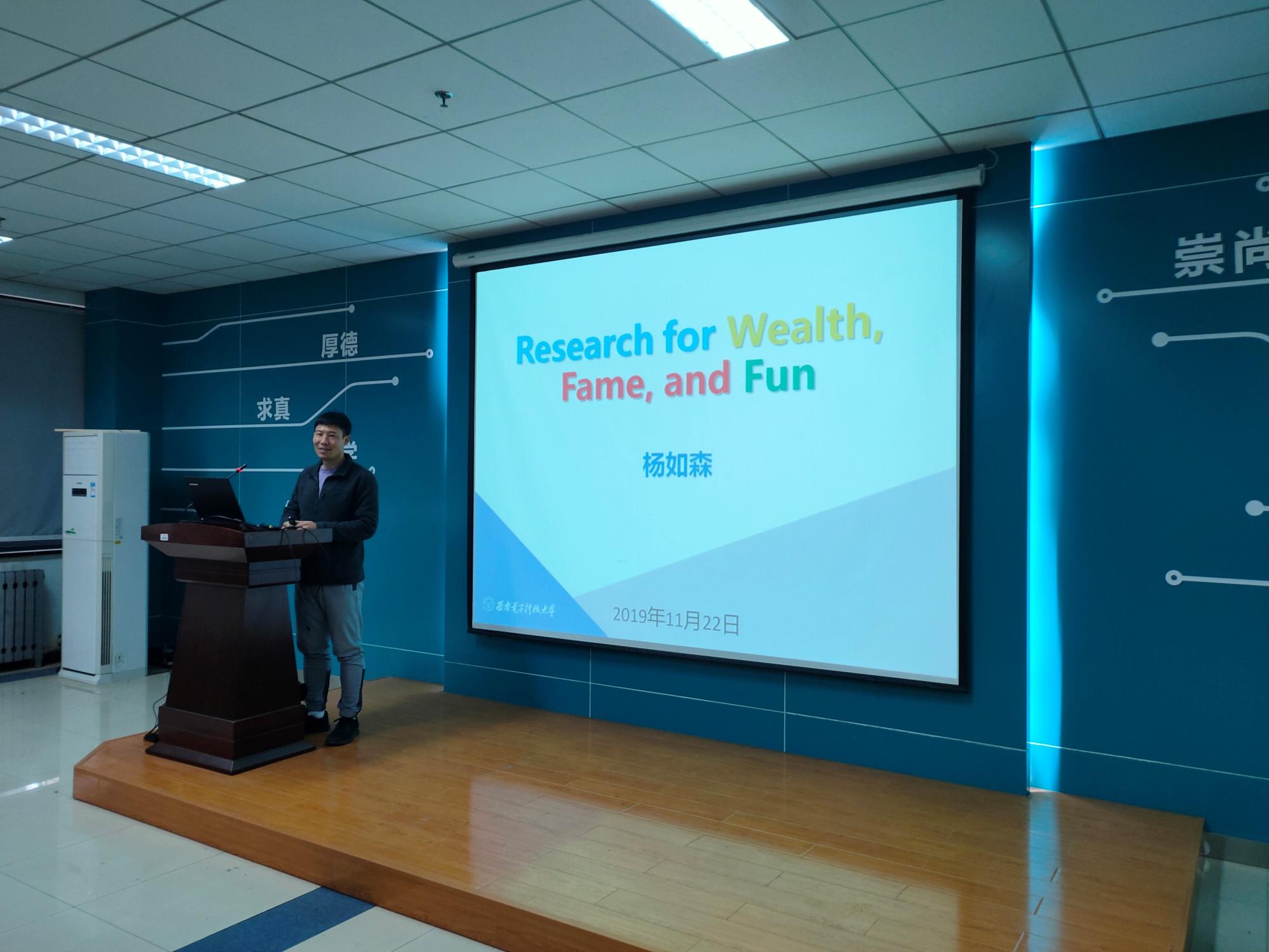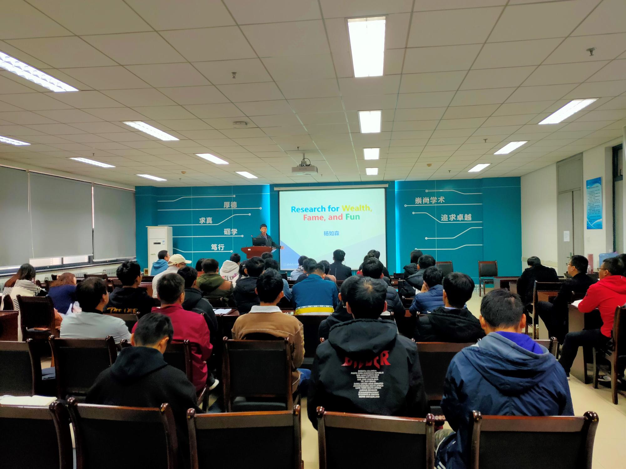 杨如森教授应邀作题为“Research for Wealth, Fame, and Fun”的学术报告。2018级和2019级研究生70余人参加,金沙娱乐城