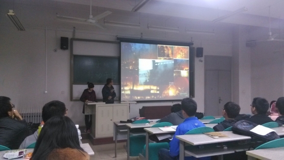 此次班会于晚上7点开始,首先,主持人通过几个火灾视频让在座的同学认识了火灾的可怕和它所带来的巨大损失。强烈的视觉效应抓住了众人的眼球。继而,是基本消防知识普及,让每位同学对火灾有了一定了解和应对措施。紧跟着,班会打破传统,使消防知识融入游戏——砂锅问到底知识竞答,极大激发班会的融洽氛围。最后,在< 让世界充满爱>中,本次班会拉上了帷幕。