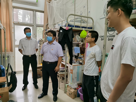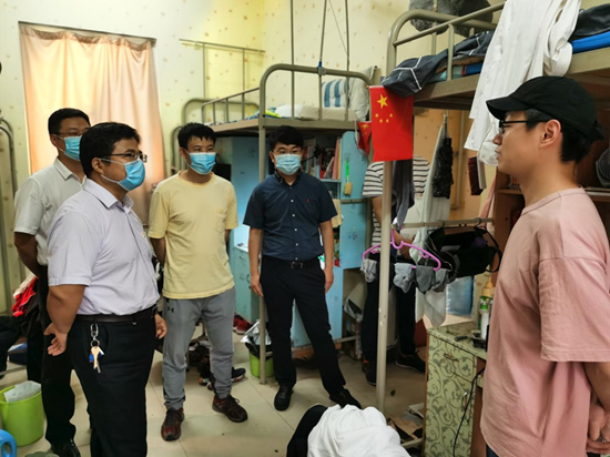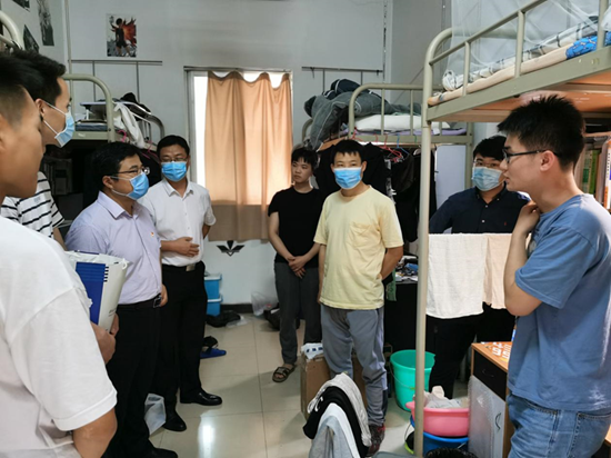 在慰问过程中,领导班子与返校同学们亲切交流,了解他们疫情期间的学习生活情况,并再三嘱咐同学们留校期间务必遵守金沙娱乐城