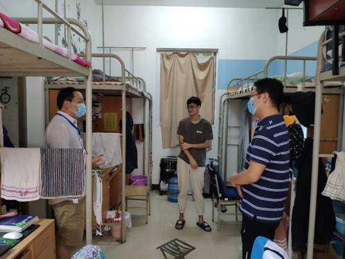 在2018级学生宿舍,副院长高宝铜、组织员王庆毅仔细询问了疫情期间学生的学习生活情况,针对大家返校后遇到的问题和困难提出了切实可行的建议,并鼓励学生尽快适应常态化疫情防控要求下学习生活节奏,调整作息安排,以崭新的面貌投入到新学期的学习生活中。