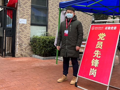封控管理期间,他身先士卒,奋斗在疫情防控第一线,协同其他志愿者积极做好家属区关卡值守,物资发放工作,做到“舍小家为大家”。