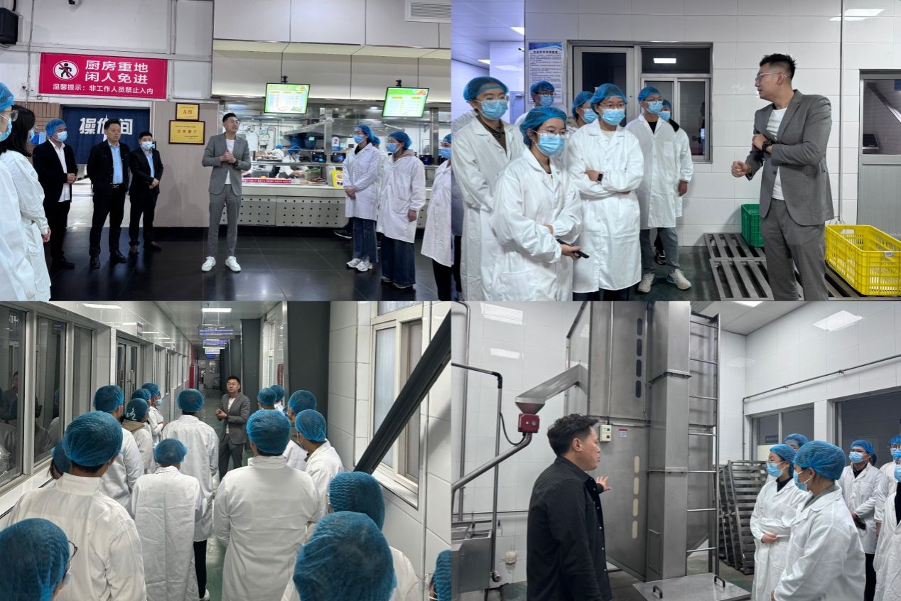 10名学生代表、辅导员老师一同走进丁香餐厅后厨和中心厨房现场参观。后勤保障部副部长韩睿全程带领大家参观与讲解。