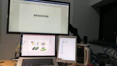 整个录课装备由一个Mac Pro电脑(也可以是其他笔记本电脑)、一个iPad、一根iPad触控笔和一个扩展显示器组成。Mac Pro电脑实现PPT屏幕录制和教师头像录制两个功能,扩展屏幕主要用于播放事先准备好的课程讲稿,iPad上预先购买白板软件作为传统课堂中的黑板,使用触控笔结合iPad自带的录屏功能就可以作为板书。每次课程结束后会产生PPT、头像和白板三个视频文件,然后使用会声会影软件进行专业视频剪辑、渲染和输出。这个过程中,最大的困难在于视频同步。因此在每次录课的开始要做好三个视频的0点校准标记,另外视频输出耗时较长,通常为3个小时以上。通过该方法可以重现传统课堂教师端的所有教学元素。