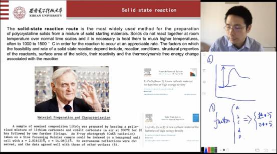 化学和材料科学均为实验科学,课堂讲述的各种方法也都和实验有密不可分的联系。在课堂涉及实验方法的时候,吴老师会化身导游,亲自带领同学们去实验室实地看一看课堂上讲授的实验装置、实验器材和实验最终效果。下图为吴巍炜副教授进行实验室现场教学的录像截图。这个可能是网络教学带来的不同于我们传统教学的一个福利吧!