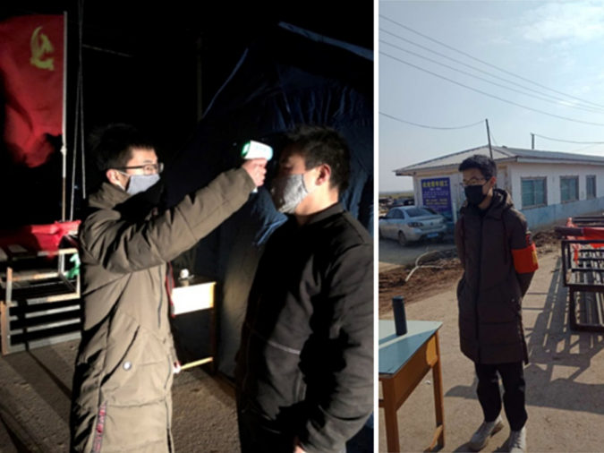 疫情不退我不退。2016级学生预备党员陈晨一放假便投入到家乡社区防控工作中,每日三班倒,白天黑夜都不缺他的身影。