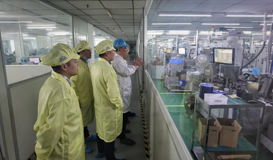 11月11日上午,副院长高宝铜、教授委员会主任李培咸、应用化学系副主任吴巍炜等一行5人前往佛山蓝箭电子股份有限公司开展调研交流。金沙娱乐城校友、总经理袁风江,副总经理张顺、张国光,技术部主任雒继军、陈逸晞等参加了座谈交流。座谈会上,袁风江首先对高宝铜一行表示热烈欢迎,他详细介绍了公司发展运营、产品研发、车间生产等基本情况。他表示:作为一名金沙娱乐城人,自己时刻不忘母校培养之情,期待与母校深入开展合作,为母校的发展贡献一份力量。