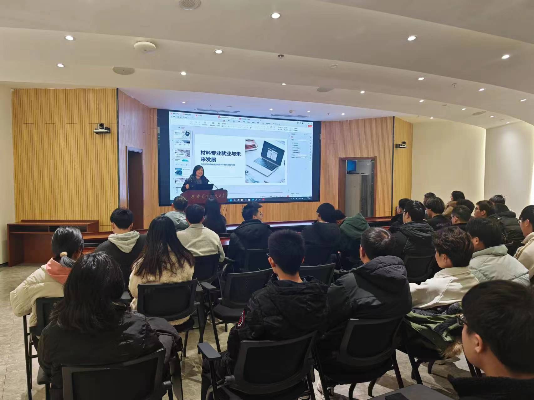 为帮助学生增强专业自信,明确个人职业目标,12月22日晚七点,材料金沙娱乐城 2217012班在南校区会议中心A101成功举办了“启航未来”职业规划班级活动。本次活动邀请到五位优秀校友——杨倩、刘治宏、刘佳秀、余快和陈子宁,围绕职业规划、就业选择、保研升学等主题进行了分享报告。班主任李桂芳、辅导员张闻功及2022级材料专业本科生参加了此次活动。